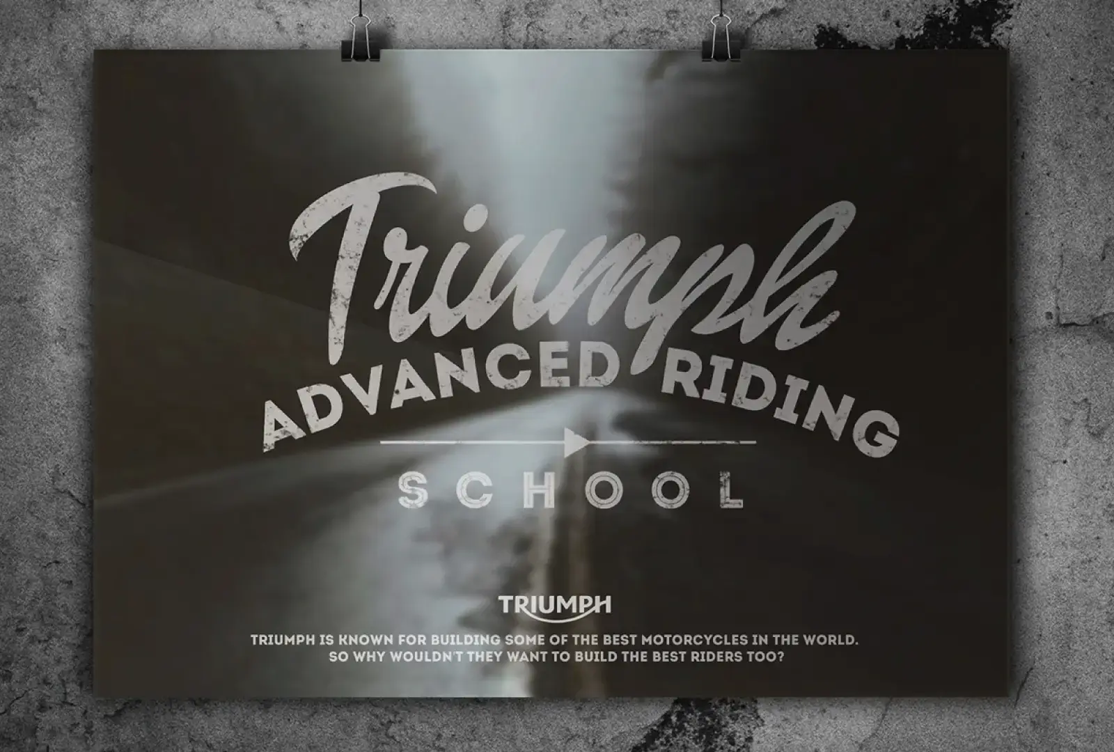 A heritage-inspired advertising campaign promoting Triumph’s new riding school, combining vintage 1920–1960s design influences with modern clarity and impact.